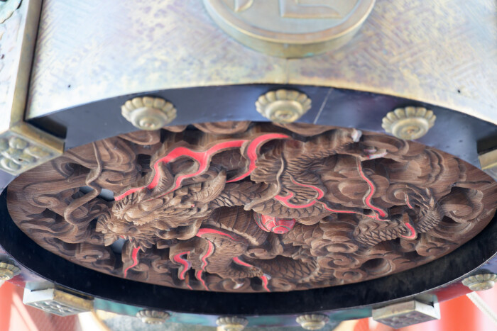 提灯の下部には見事な彫刻が施されています。手を伸ばせば触れられる距離で眺められるのがすごい。眼福です。