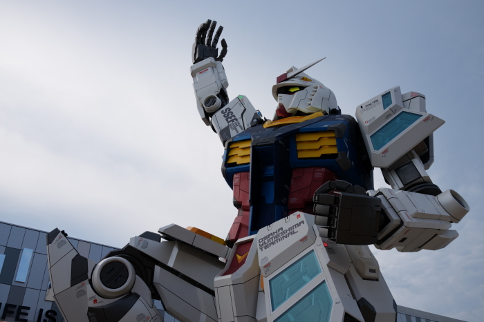 大屋根リングの上からでも目立つのが、ガンダムパビリオンの前に鎮座するガンダムです。パビリオンを体験してきた人や、写真撮影に興じる人で常にいっぱいの空間です。この日は運良くパビリオンの当日枠が取れたので、噂のガンダムパビリオンを体験できました。