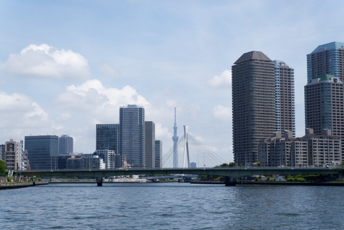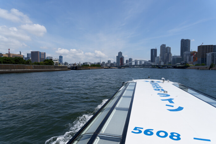水門を出たら隅田川を上流に向かっていきます。隅田川には橋がたくさんかかっていたり川岸が整備されていたりと東京湾とは違ったみどころがたくさん。昼間の隅田川は初めてなので楽しみです。
