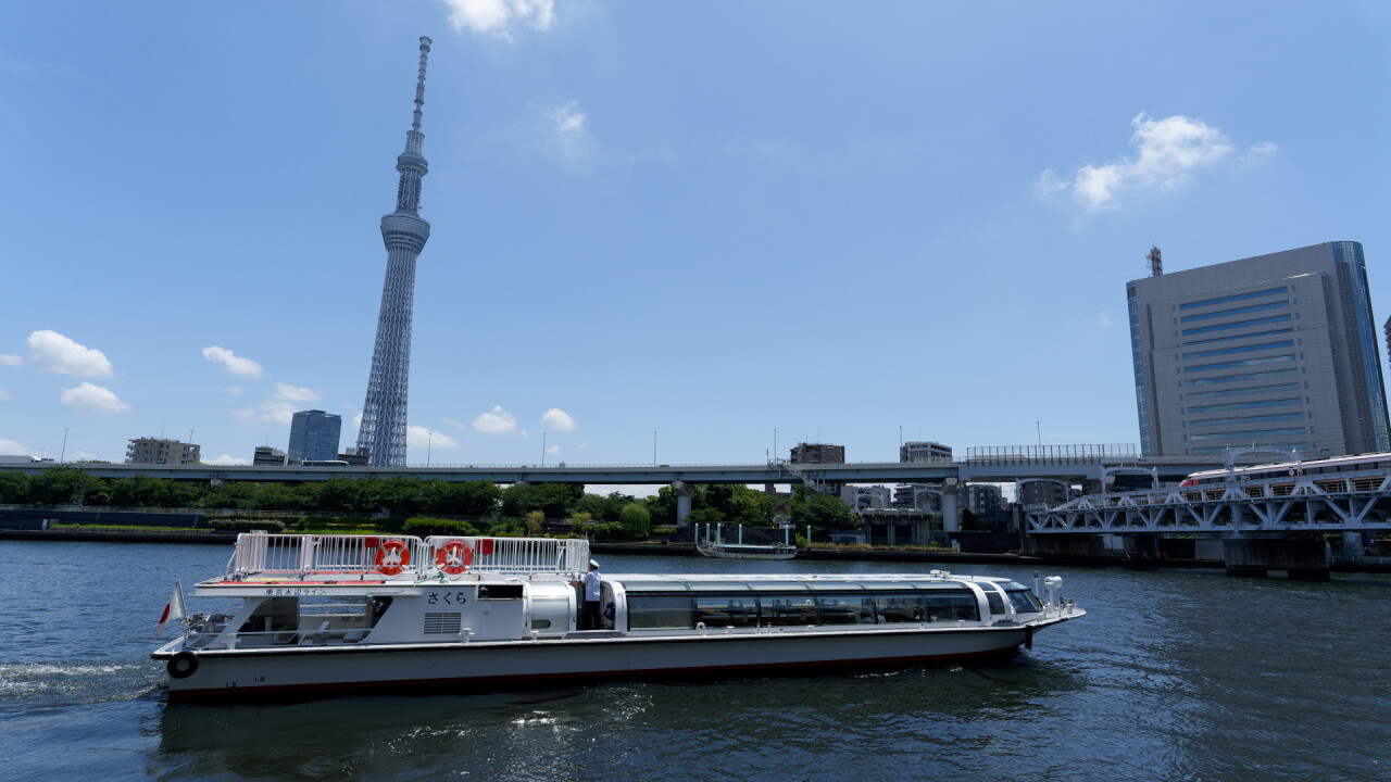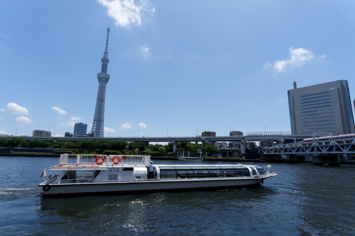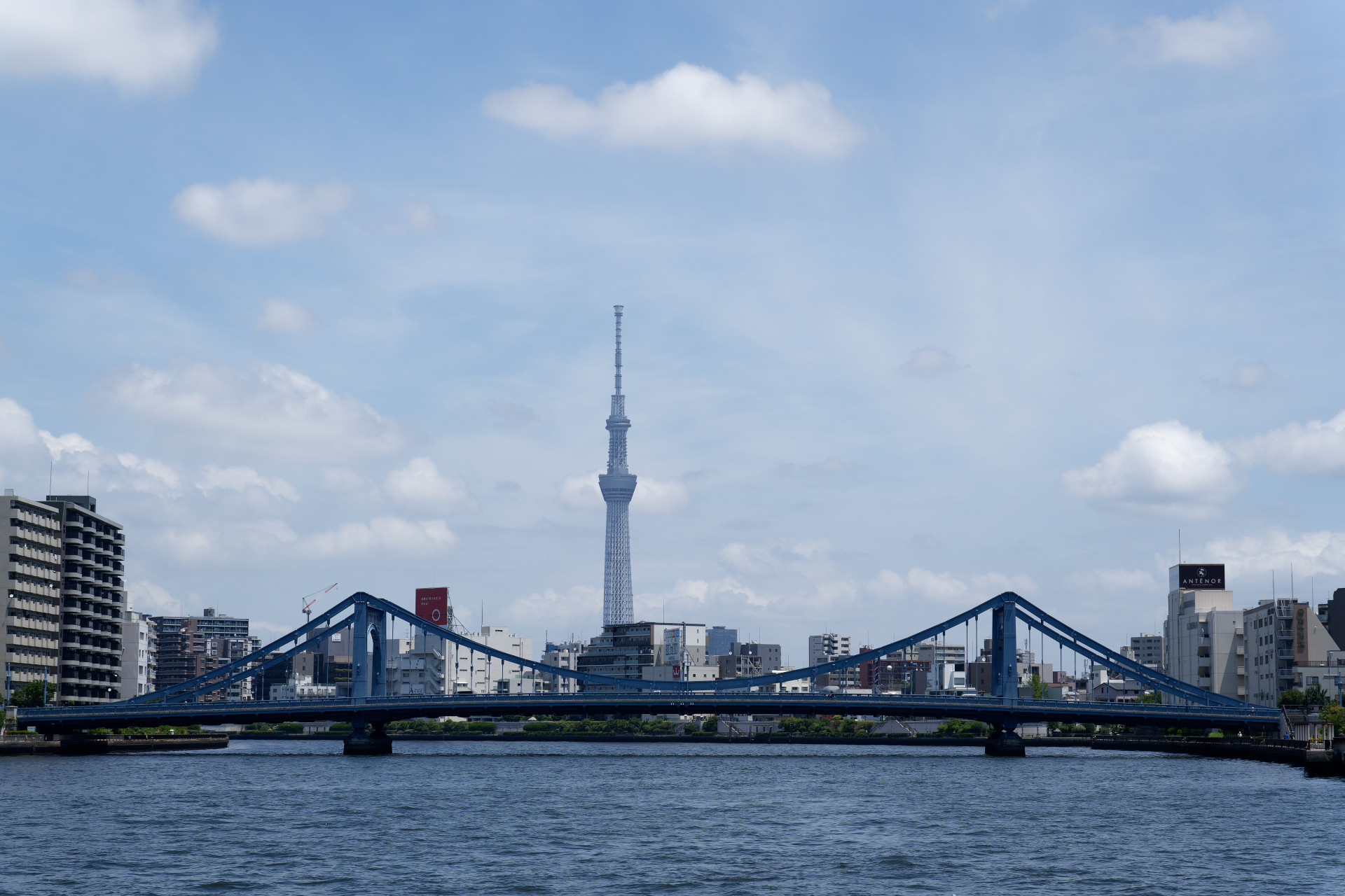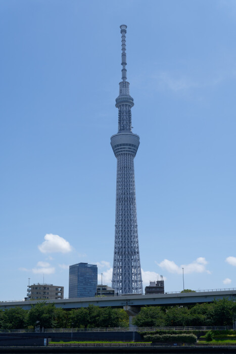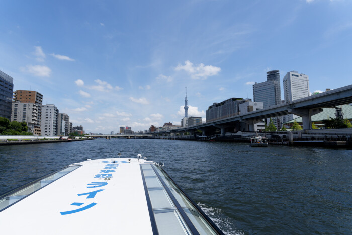 しばらく進むとスカイツリーが見えてきました。あれだけの高さだといろいろな場所から目にすることができますが、川の上からだと一味違います。ライトアップされていないスカイツリーもよいものです。