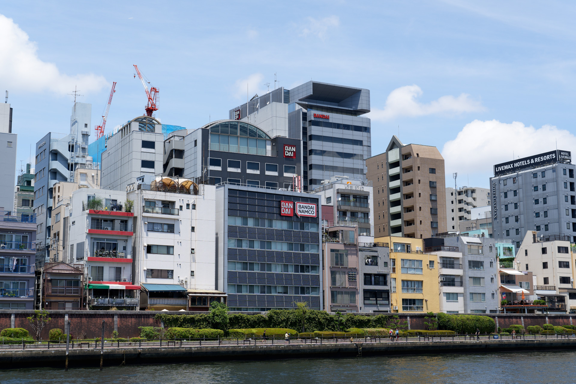 ふと川岸に目を向けるとバンダイナムコの看板が見えました。ここら辺が台東区駒形でしたね。何かのゲームで最強パスワードに台東区駒形が入っていて、なぜか記憶にあるのです。