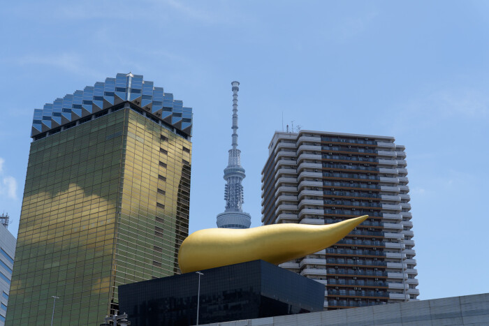 アサヒグループホールのオブジェです。昼間に見ると夜よりは景色に溶け込んで見えますね。