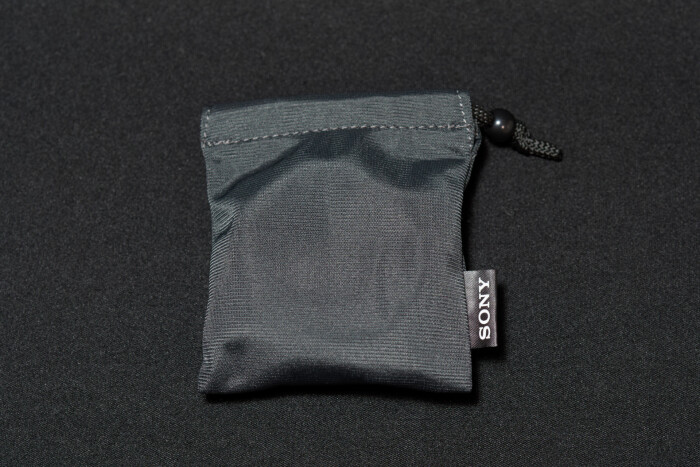 続いてレンズフードです。SONYロゴ入りのポーチに入っています。てっきり紙袋梱包だと思っていたので、意表を突かれました。