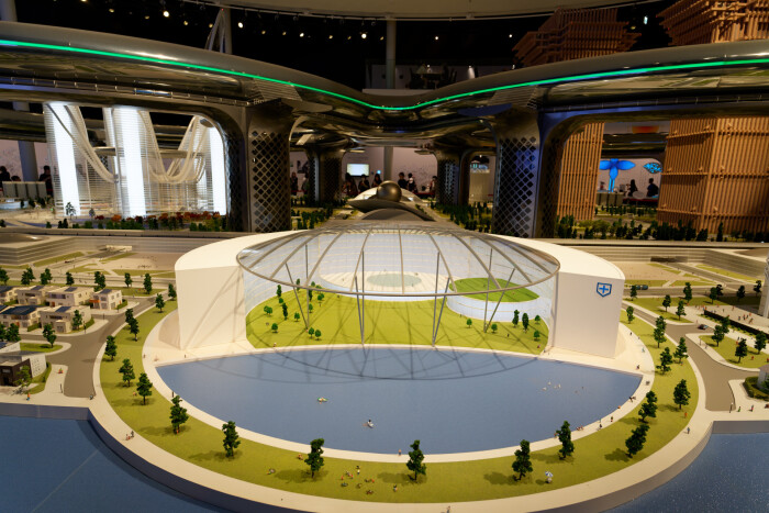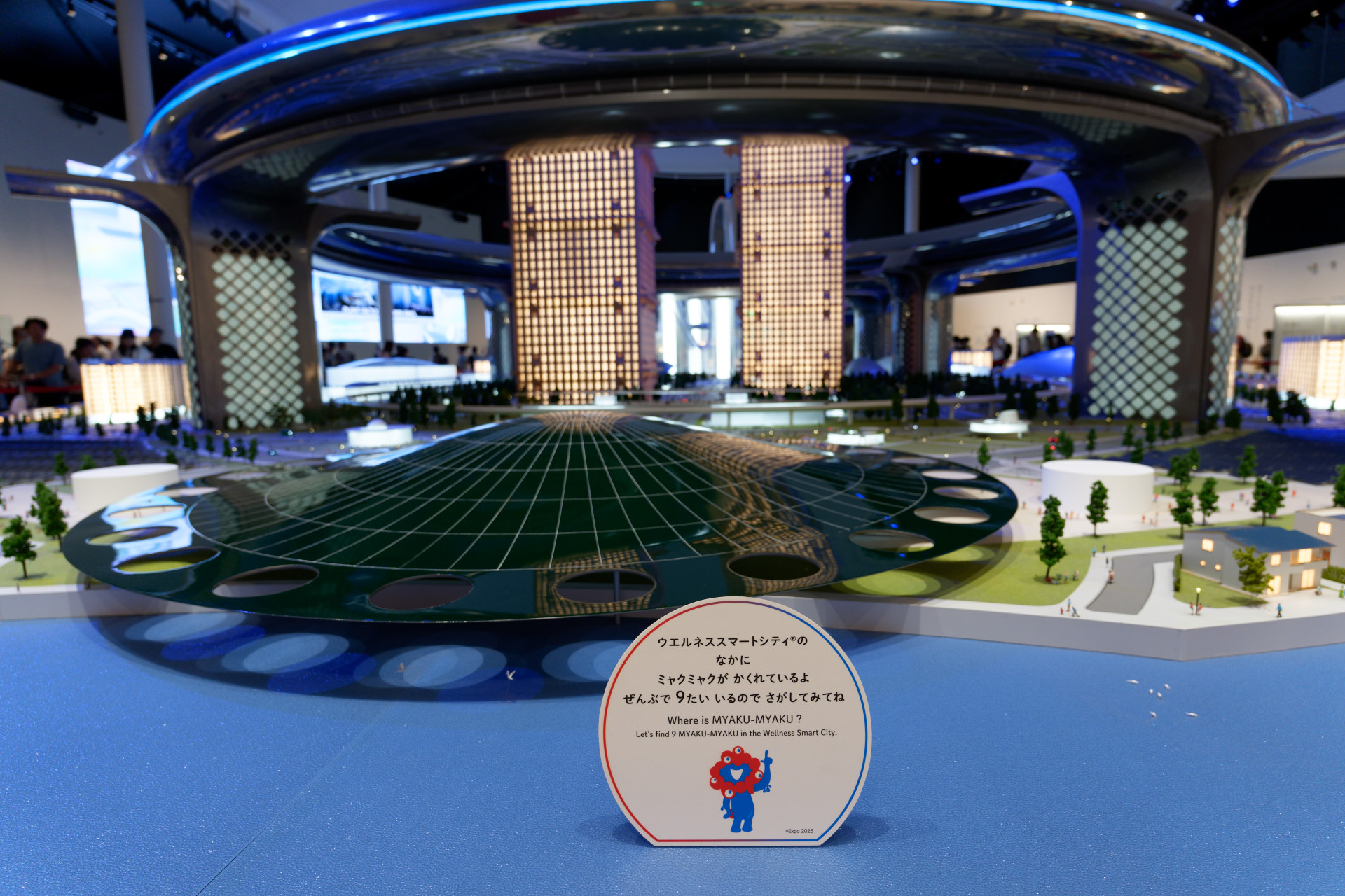 中は未来都市のジオラマを中心に据えた内容です。ジオラマの中にはミャクミャクが隠れているそうですが、なかなか見つけられませんね。ウォーリーをさがせ、よりも難しいかも。