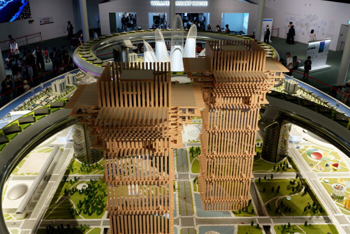 未来の都市がモチーフということで、万博のテーマである「いのち輝く未来社会のデザイン」を感じられました。