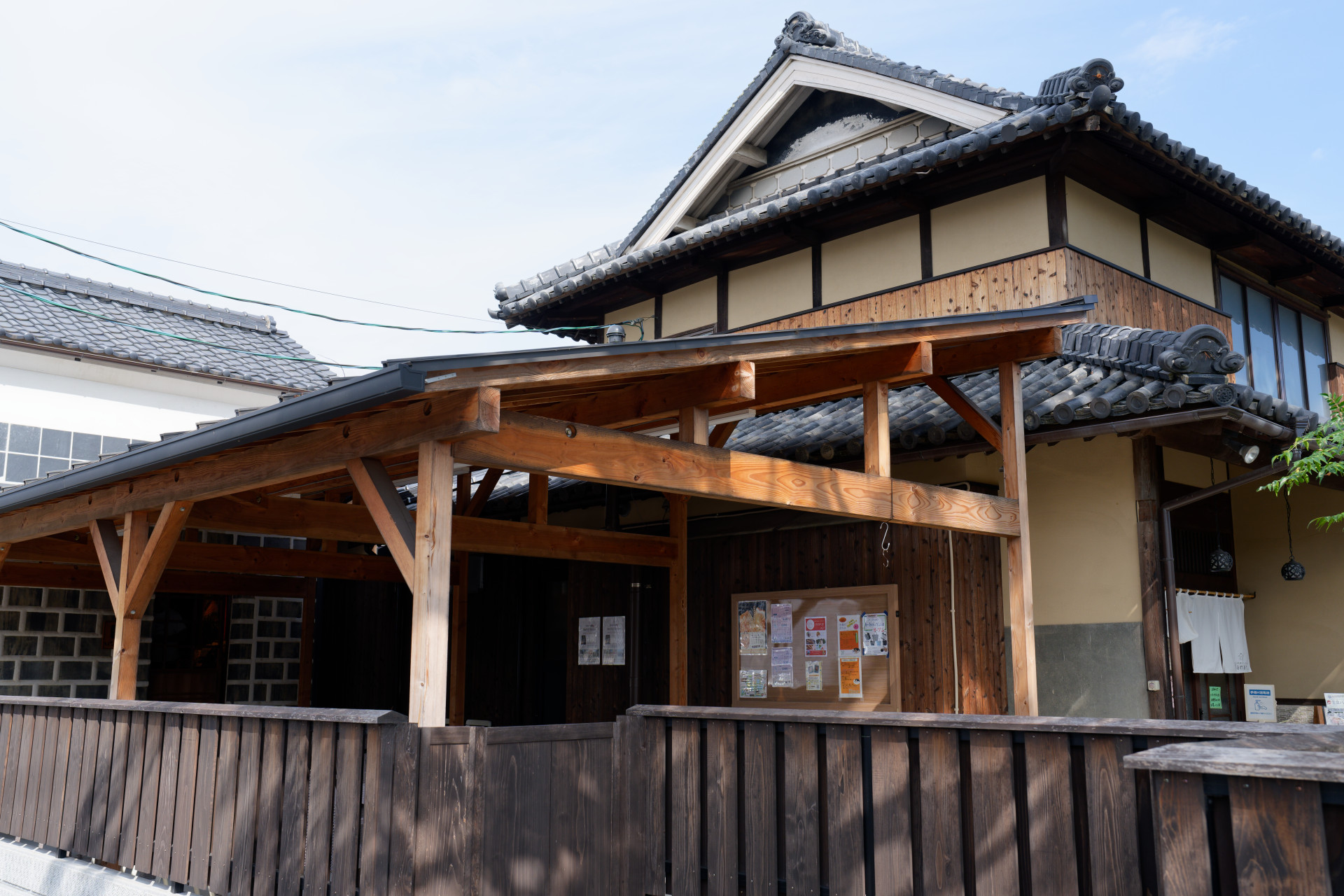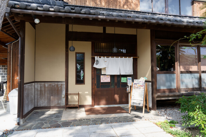 店構えは古民家らしく古風な趣です。入り口横のステンドグラス風になった窓がステキ。