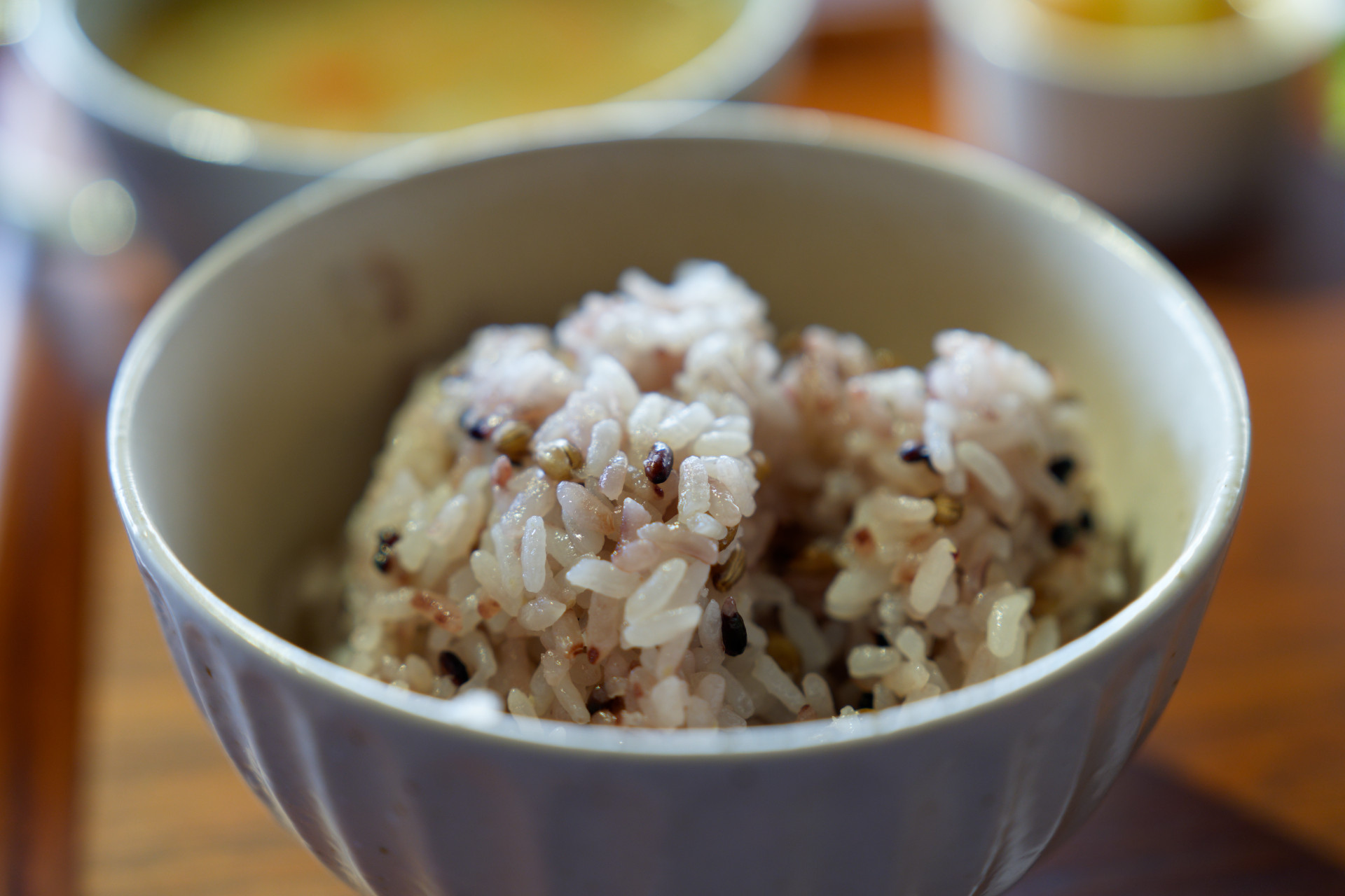 ご飯は白米ではなく、いわゆる十穀米というやつです。なんとなく健康に配慮した気分になれます。