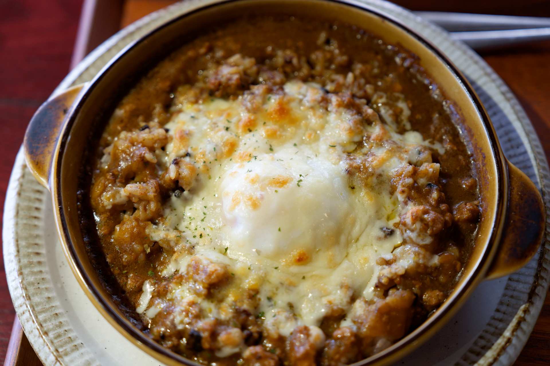 こちらは別で注文した焼きカレードリアです。チーズと卵がとろーりと熱々で、とても美味。