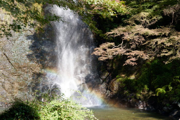 箕面大滝は「日本の滝百選」に選定されている落差33mの大滝です。流れ落ちる滝の姿が箕という農具に似ていることから、箕面大滝と呼ばれるようになったそうです。