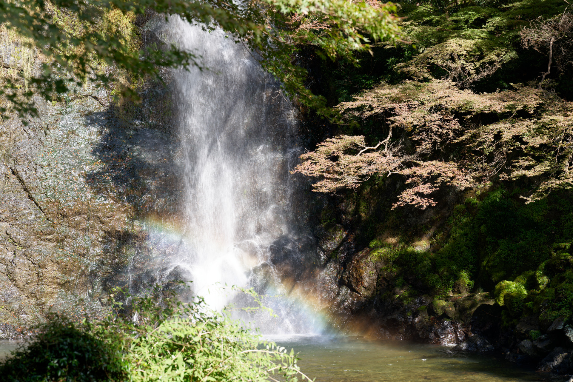 箕面大滝は「日本の滝百選」に選定されている落差33mの大滝です。流れ落ちる滝の姿が箕という農具に似ていることから、箕面大滝と呼ばれるようになったそうです。