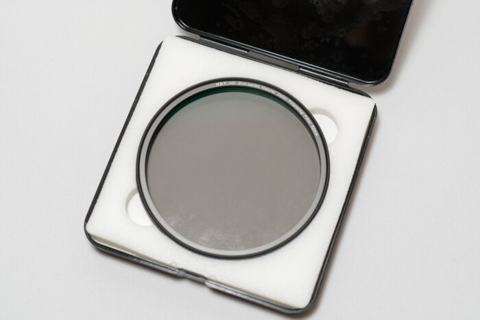 見た目は普通のフィルターです。若干、濃度が薄く感じるのは透過率の高さゆえでしょうか。反射率0.2%、偏光度99%ながら、露出倍数は約一段分と従来品よりも明るいフィルターです。