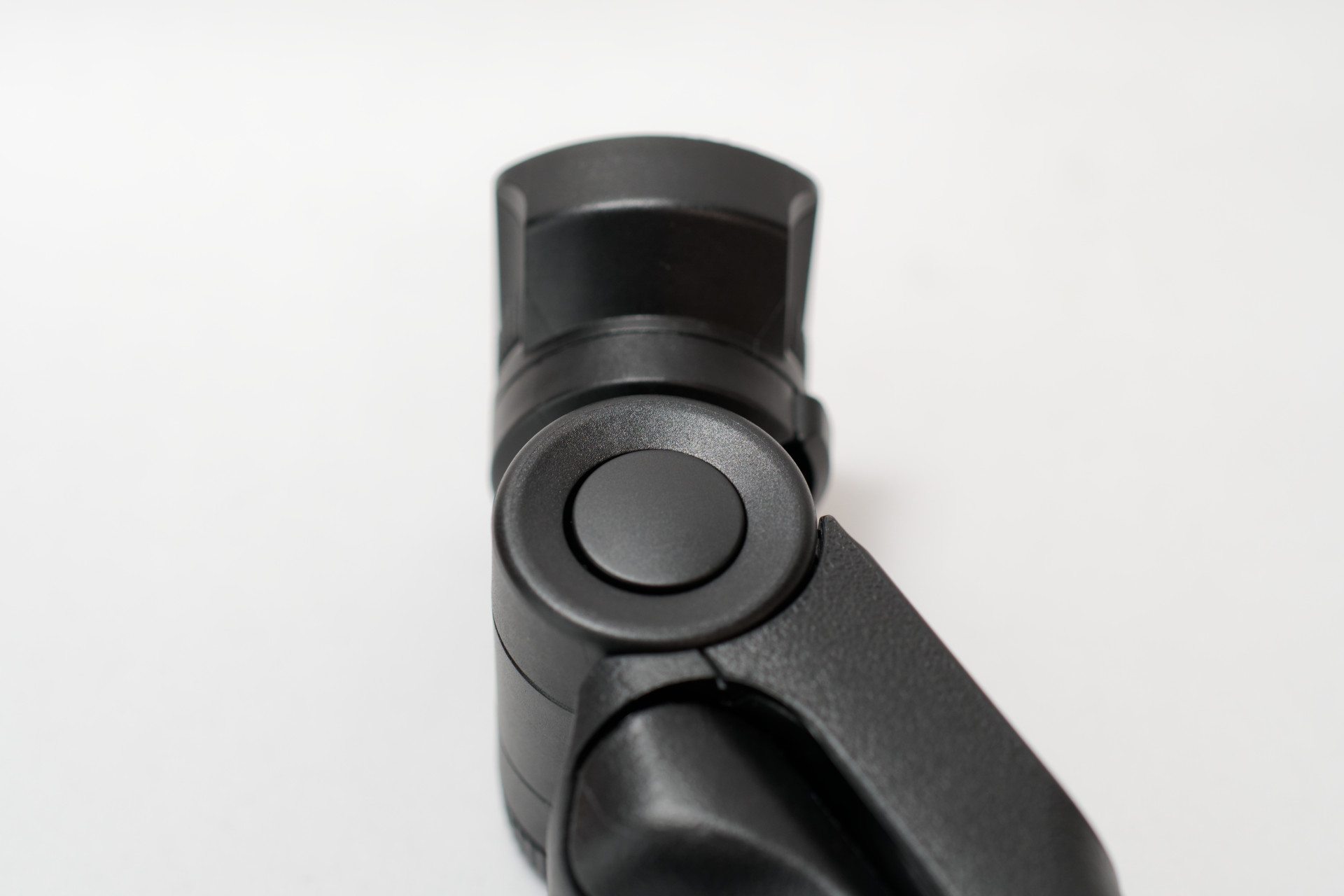 側面には三脚座の角度調整用のボタンがあります。角度調整はチルト方向のみで、無段階ではなく一定角度ごとに固定される機構です。感触としてはカムで固定されているみたいなので、固定力は高そうです。