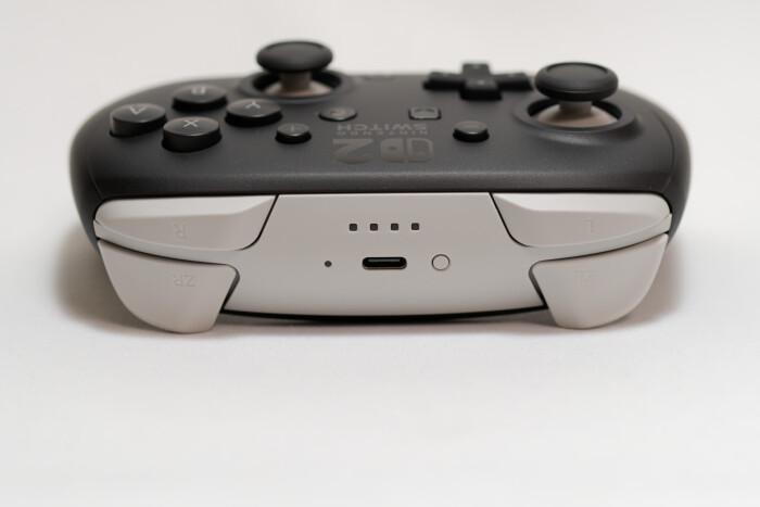 グリップ部分に追加のボタンが配置されています。左右に配置されたこのボタン、GL/GRボタンには、好きなボタン操作を自由に割り当てることができます。アクションゲームでは便利に使えるかも。ゼルダの伝説だと、ダッシュに割り当てるのが定番みたいですね。