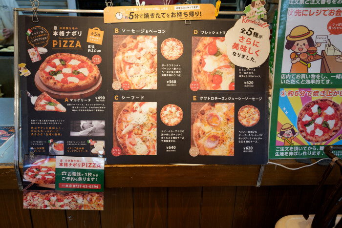 パン以外にピザも扱っています。店内の石窯を使って約5分で焼いてもらえるそうです。どれも美味しそうで、次回はピザにも挑戦してみたいと思います。