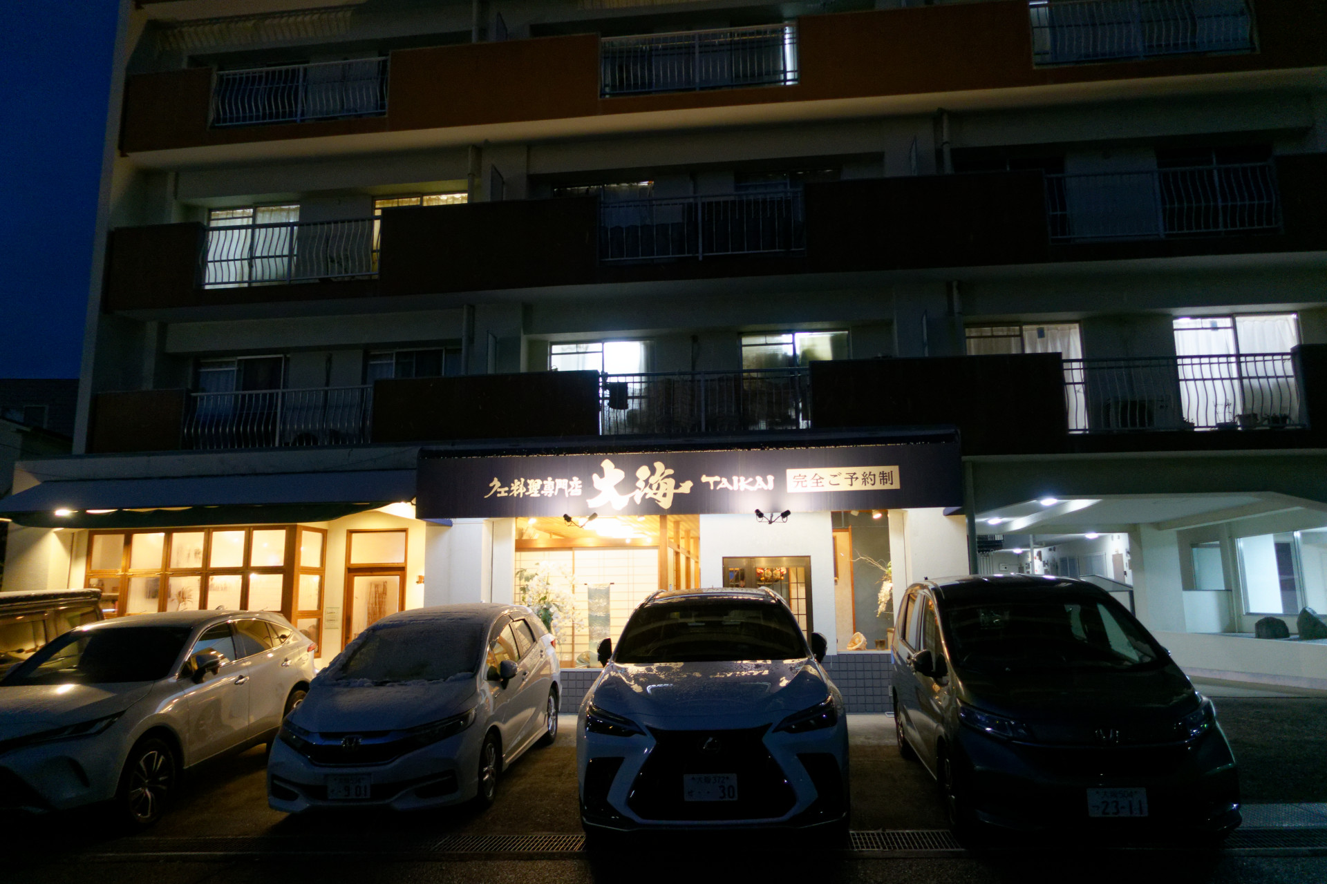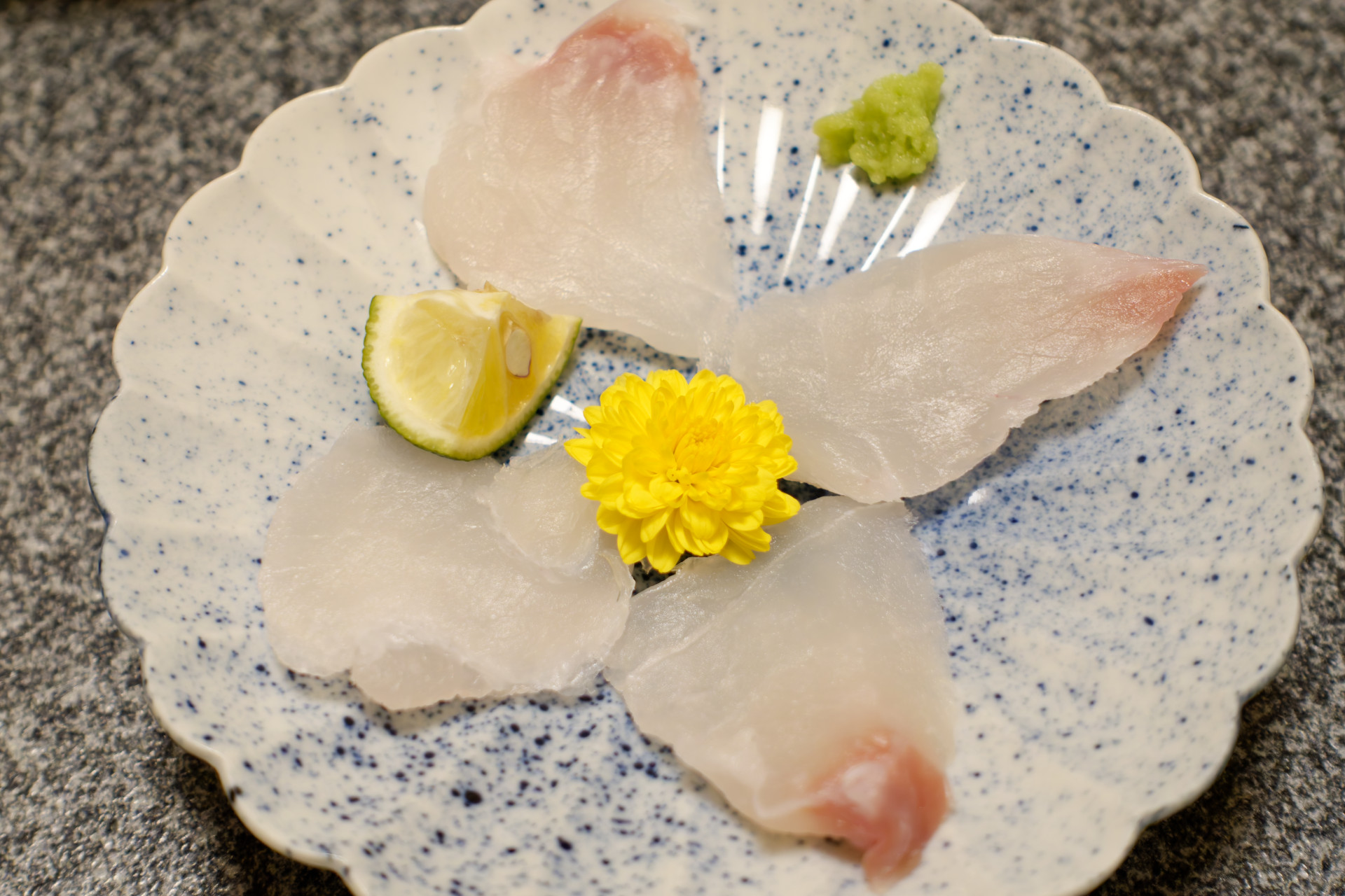 住宅地の中、集合住宅の1Fにお店があります。こちらのクエは九州からの直送で、水揚げから半日程度で届く新鮮さとのこと。調理に時間がかかるため、完全予約のコース制で運営されています。