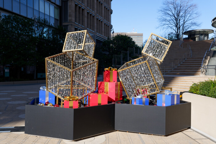 さらに歩いて、東京ミッドタウン日比谷です。スパンコールが風になびいてキラキラしていました。夜はライトアップされて、さらにキレイなんでしょうね。