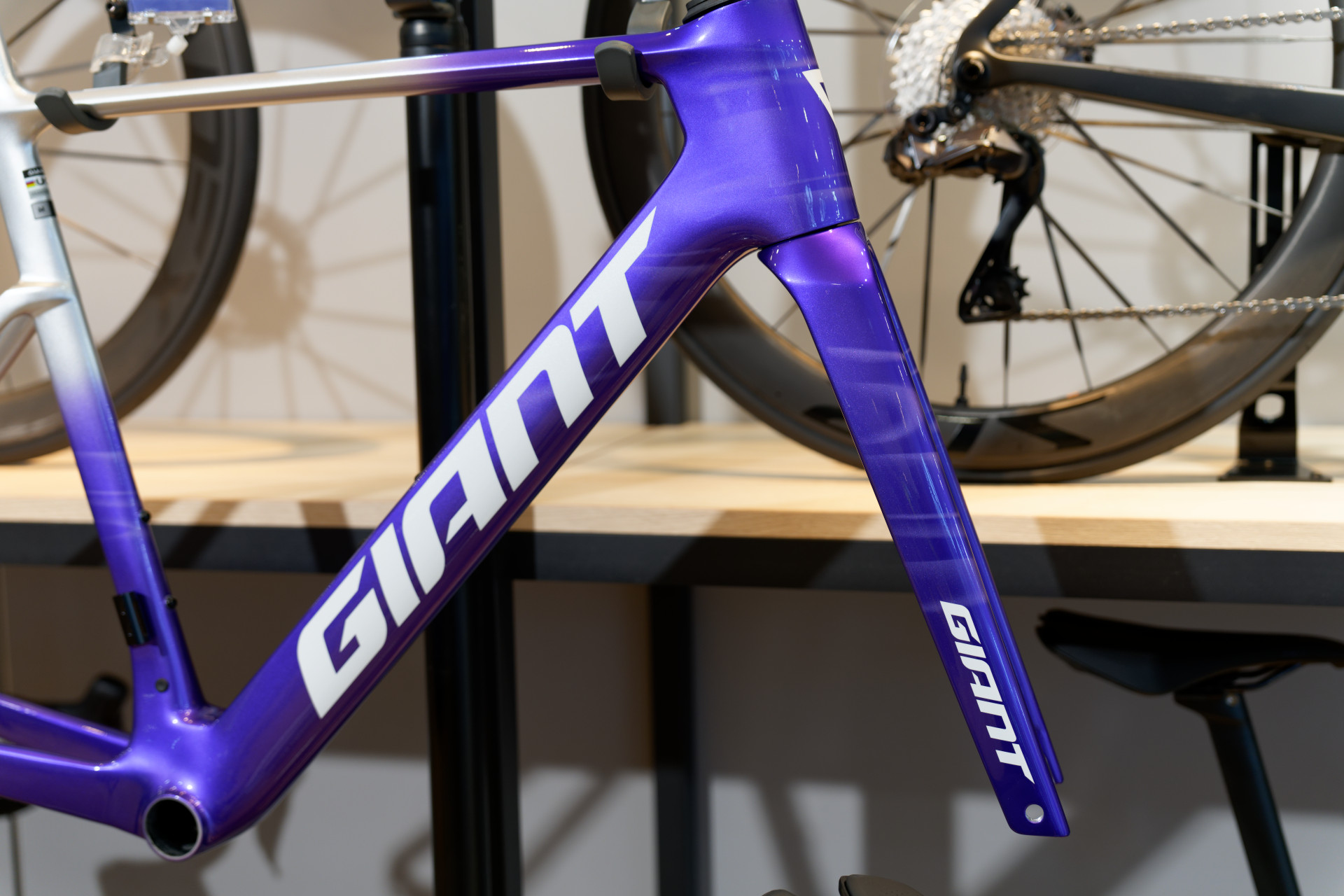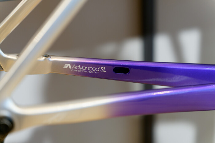 チームカラーのフレームセットは紫が鮮やかです。シルバーへのフェードカラーもステキ。