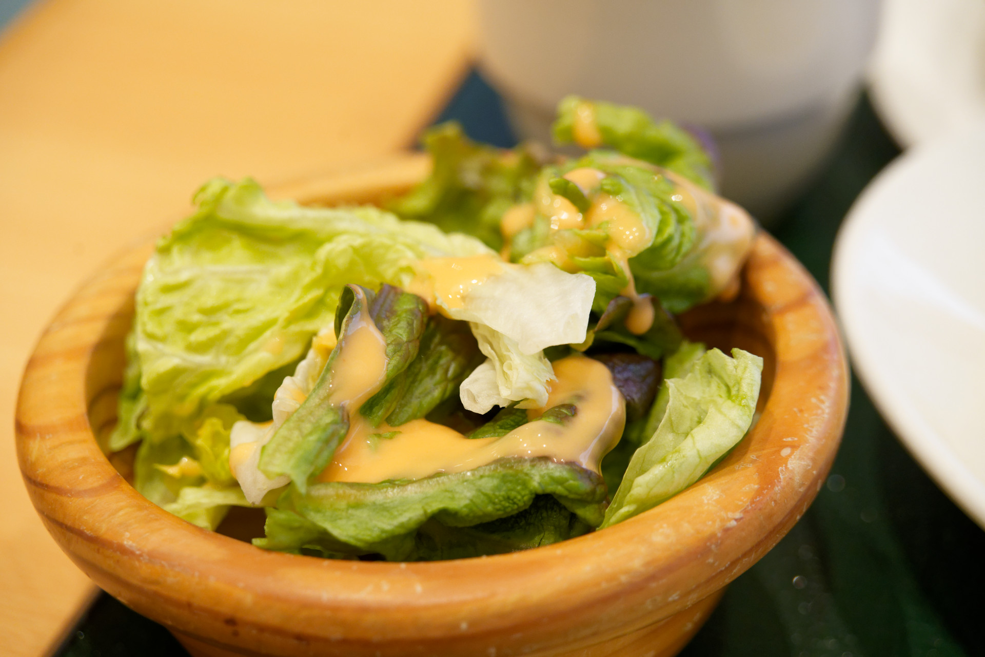 付け合わせのサラダはシャキシャキ新鮮で美味。野菜は大事ですね。