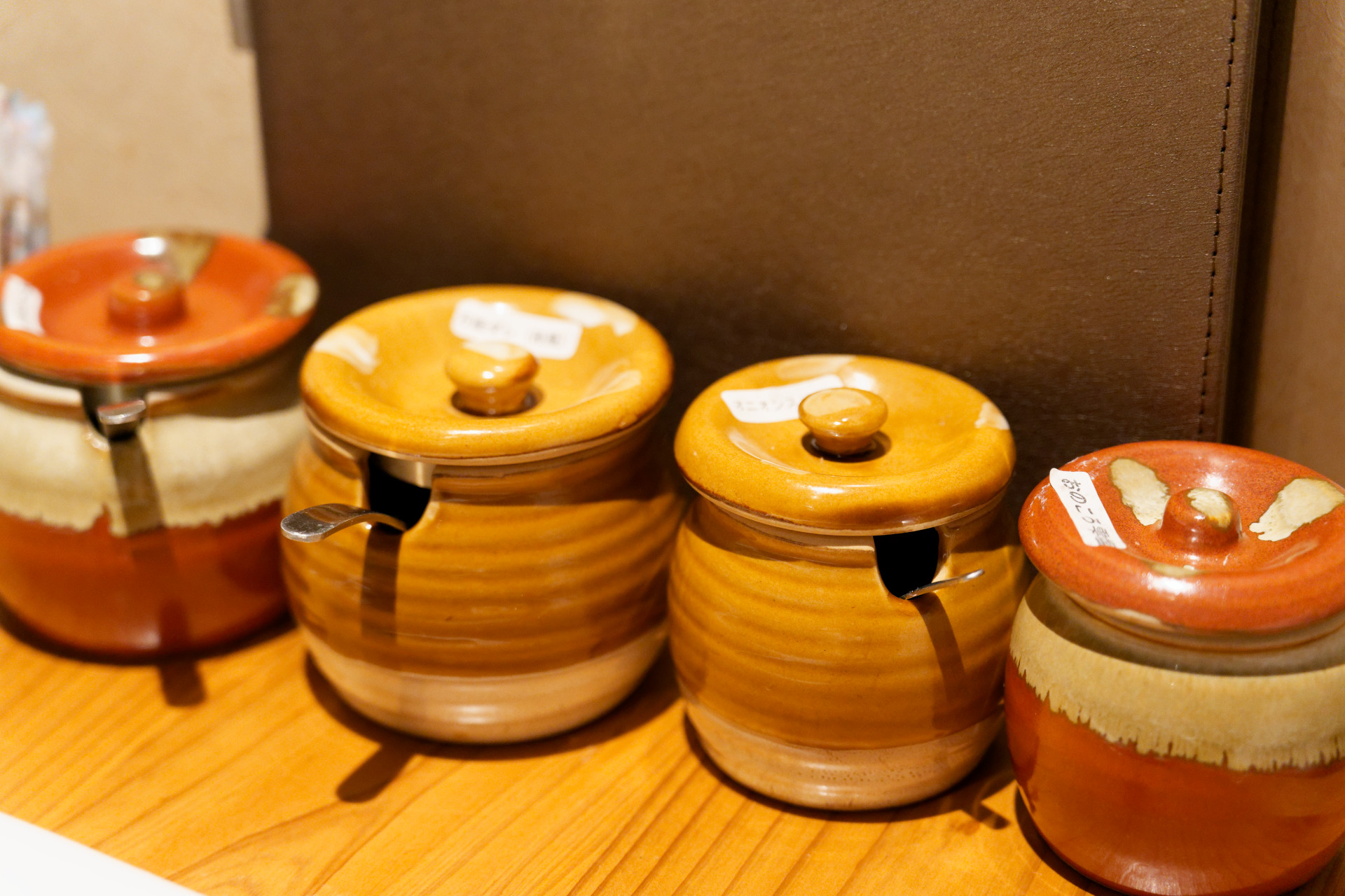塩、オニオンスパイス、和風、デミグラスソースの4種類の調味料が卓上に用意されています。4種類もあると、飽きずに食べられますね。そのままや塩などのシンプルな味付けの方が、淡路牛の旨さを直接感じられて美味しく感じました。