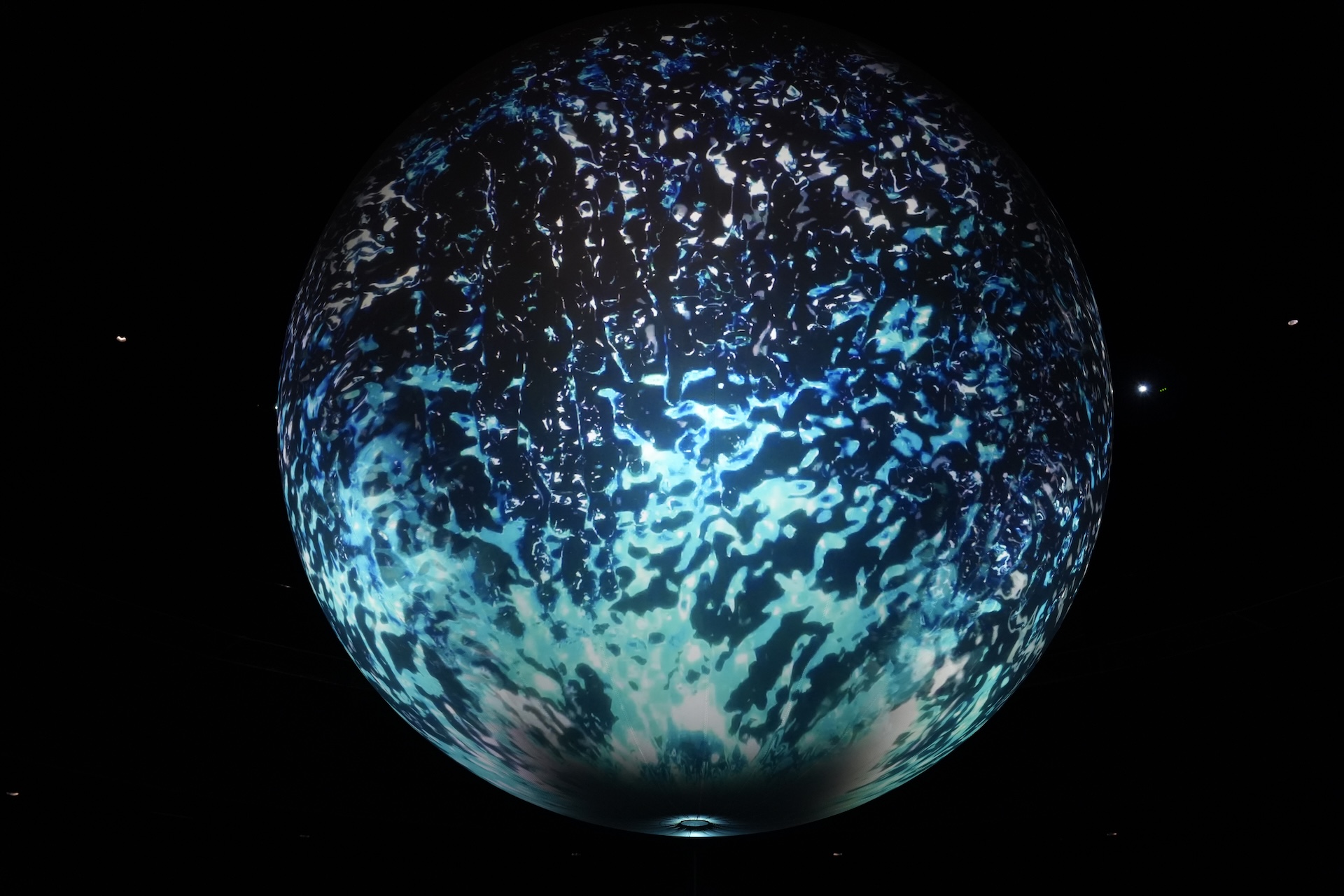 ニフレルのコンセプト「感性にふれる」を体現した巨大アート空間「ワンダーモーメンツ」です。吹き抜けの空間に浮かぶ球体と、足元に広がる円形スクリーンに映像作品が投影されます。くるくると切り替わる映像を眺めていると、時間を忘れて没頭できます。休日は小さなお子さんで賑わうので、没頭は難しいかも。