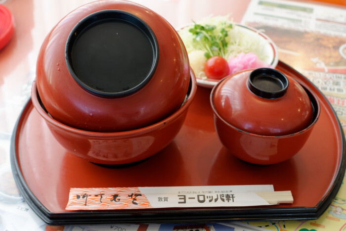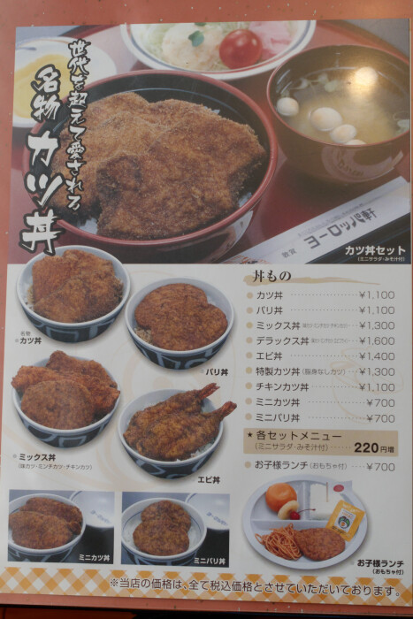 福井県名物ソースカツ丼の老舗、ヨーロッパ軒です。総本店は福井にありますが、敦賀にも5店舗ほどお店を構えています。敦賀駅は北陸新幹線の開業に合わせてキレイな駅舎になり、駅前も整備されました。駅前から少し歩いたところにヨーロッパ軒の敦賀駅前店があります。