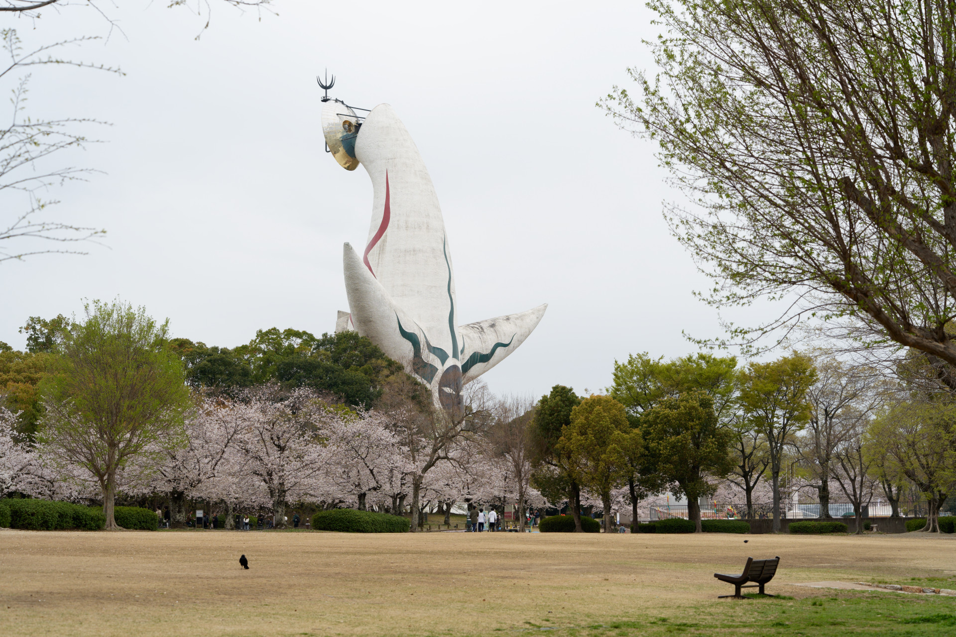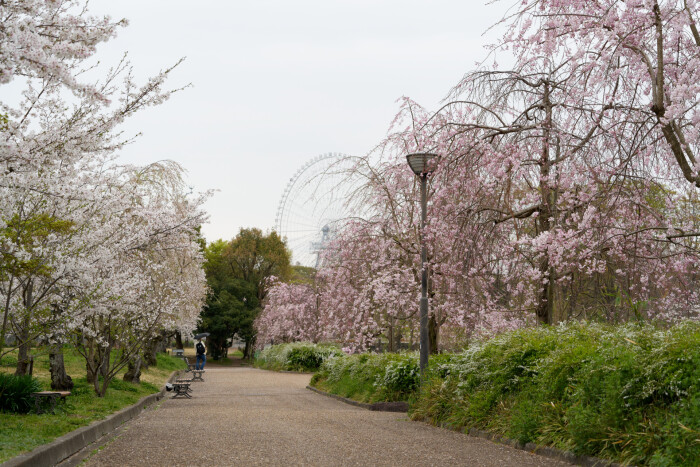 東大路の桜並木を中心として、12品種約5,500本の桜が咲き誇る万博記念公園。この日はあいにくの空模様でしたが、たくさんの人が桜を愛でに訪れていました。