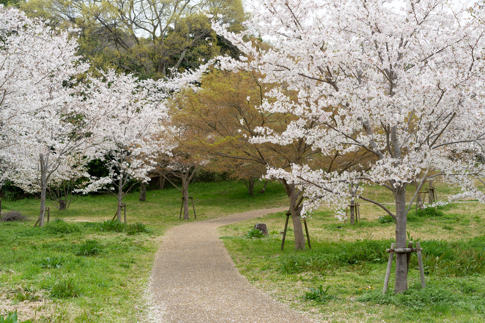 万博記念公園では、早咲きのカンヒザクラや河津桜、定番のソメイヨシノ、ジンダイアケボノや遅咲きのサトザクラなど、長期間にわたって種々の桜が楽しめます。