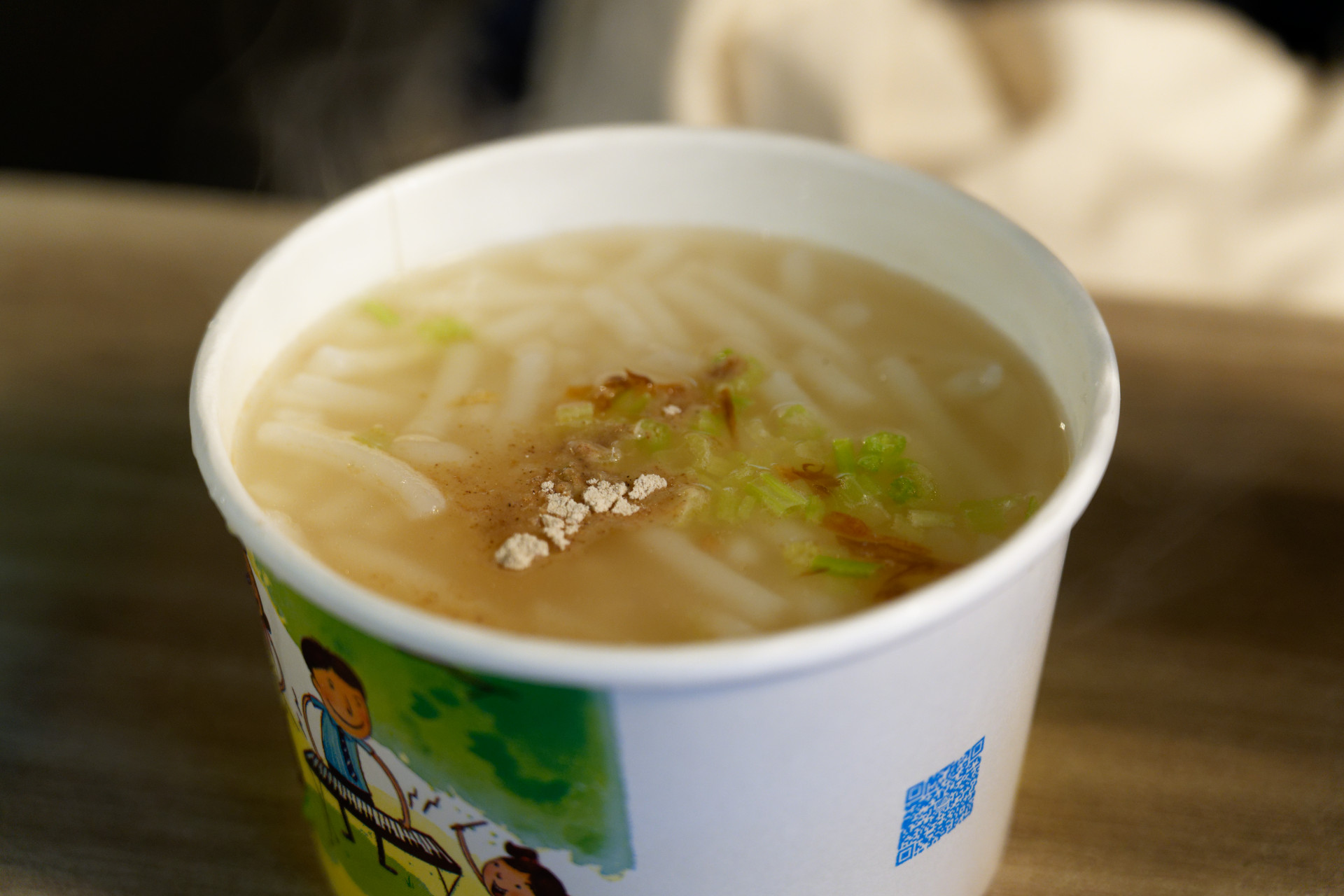 Noodles 難忘米粉湯 gufutoku 2026年4月6日 / 2026年4月6日 スポンサーリンク 夜市に行った際に、有名店に挑戦してみました。 難忘米粉湯 孤独のグルメにも登場したとのこと。米粉で作ったビーフンスープのお店です。 店頭ではビーフンと厚揚げが煮込まれていました。 さっそく注文してみました。アツアツのスープにビーフンがてんこ盛り。 こちらは厚揚げと牛肉です。皿にビニール袋をかけて提供されるのがユニーク。洗い物を減らす工夫でしょう。味が染み込んでいて、とても美味しかったです。 夜市には他にも魅力的なお店がいっぱい。次はもう少し上手に楽しめるかな。ごちそうさまでした。 スポンサーリンク
