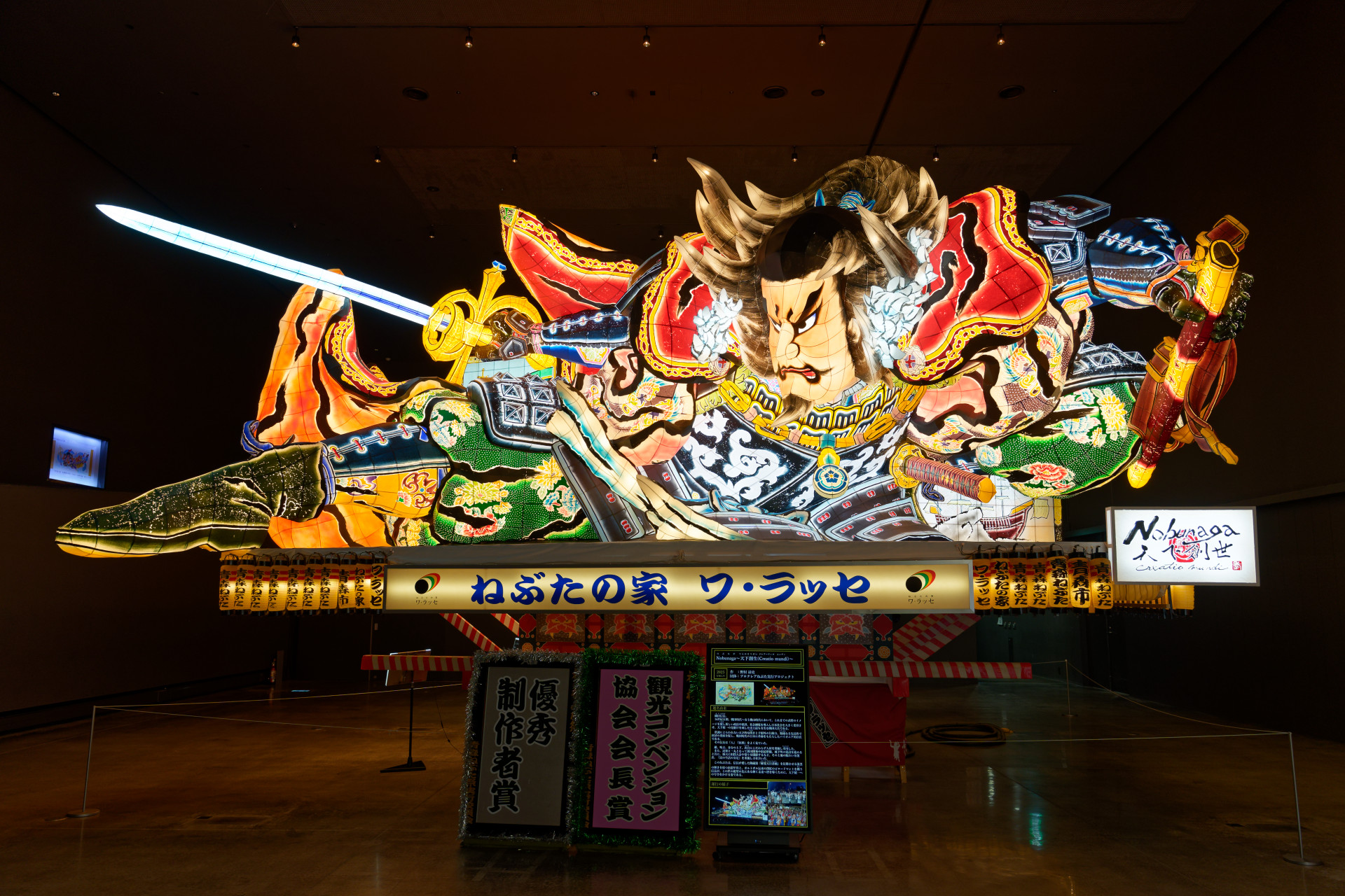 どれも賞を受賞したねぶただけあって、迫力と繊細さが同居した見応えのある作品ばかり。三味線・笛・ねぶた囃子が流れていて、ねぶた祭の雰囲気が味わえます。