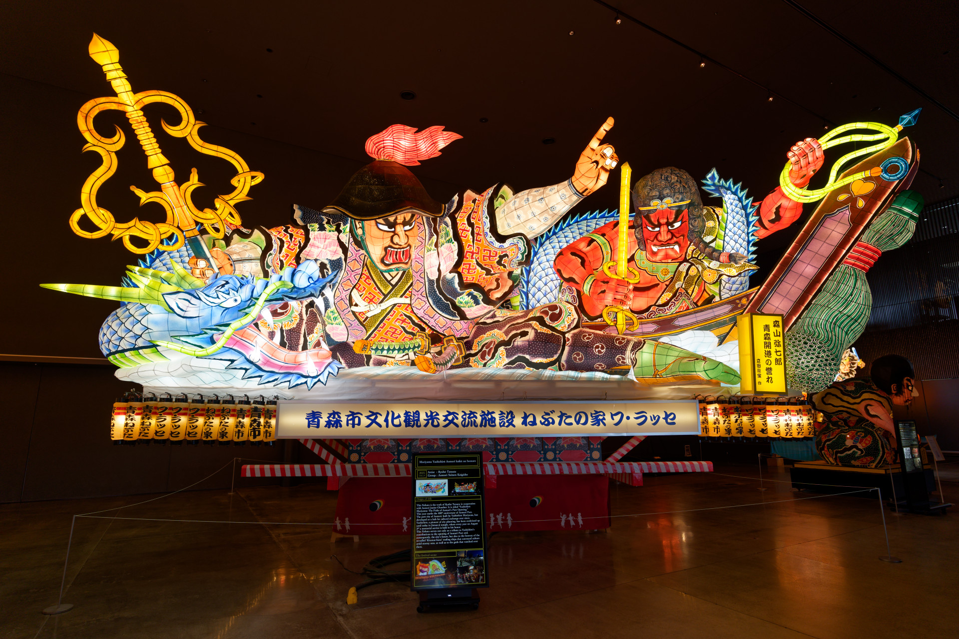 2Fまで吹き抜けになったねぶたホールでは、祭本番に出陣したねぶたが常設展示されています。